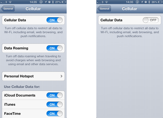 On that menus, you can either turn Data Roaming off just to avoid roaming charges or you can turn Cellular Data off completely; now the beauty of this is you can still use WiFi connectivity and if your location allows you to connect to a wifi network for free or paid, then you simply use the WiFi connectivity and avoid extra data charges.