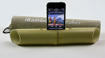 iBamboo is a natural speaker made from a single natural material, bamboo. The natural resonance of the bamboo amplifies the sound produced by the built-in speaker in the iPhone 4. The sound moves in two directions and creates a stereo effect. iBamboo is 100% eco-friendly, efficient to manufacture, and produces little waste. These speakers combine the high-tech of the modern day with the simplicity and aesthetics of nature. Since bamboo is a natural material, no two iBamboos are alike. Every piece has the same functional parameters, but each one is unique in its appearance and beauty. As an added benefit, iBamboo improves the feng-shui of your desk or whatever other place you put it.