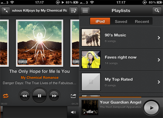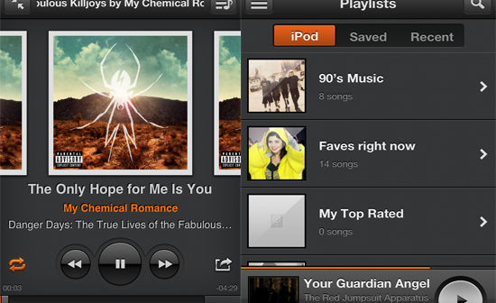 I love the UI of Groove 2 and it really is a pleasure to use. It’s the only app I use now to listen to music on my iPhone or iPad. When you have a song playing, the screen shows the album artwork and underneath all the controls you will need like rewind, fast forward and play. There is also a button to tap that will show you the list of songs that are going to be played next.