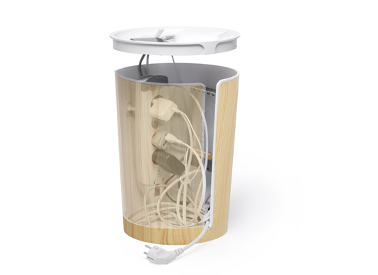 CableBin is available in light and dark-wood finishes, and its lid can also double-up as a handy charging station for your portable devices. It is constructed from high-density, flame retardant plastic for peace of mind that cables and devices are safely stowed.