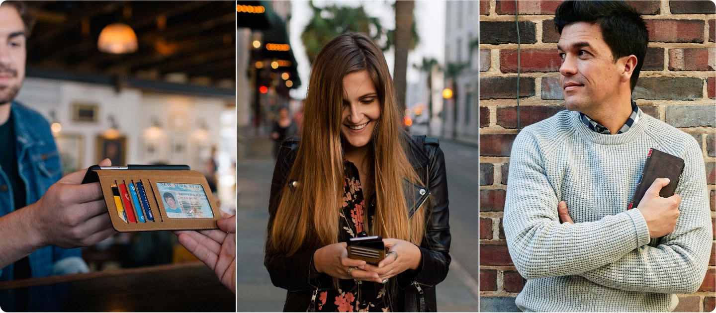 Like previous BookBook models, this one is made from high-quality, hand-distressed leather that gets better-looking and more comfortable with age. Inside this vintage BookBook lies a wallet with room for a few bank cards, a window ID holder and a full-size pocket for cash and receipts. Store your loyalty cards and extra credit cards in Passbook. Having your wallet and iPhone inside BookBook means you can pay for dinner with Apple Pay or a debit card — and tip your server with cash.